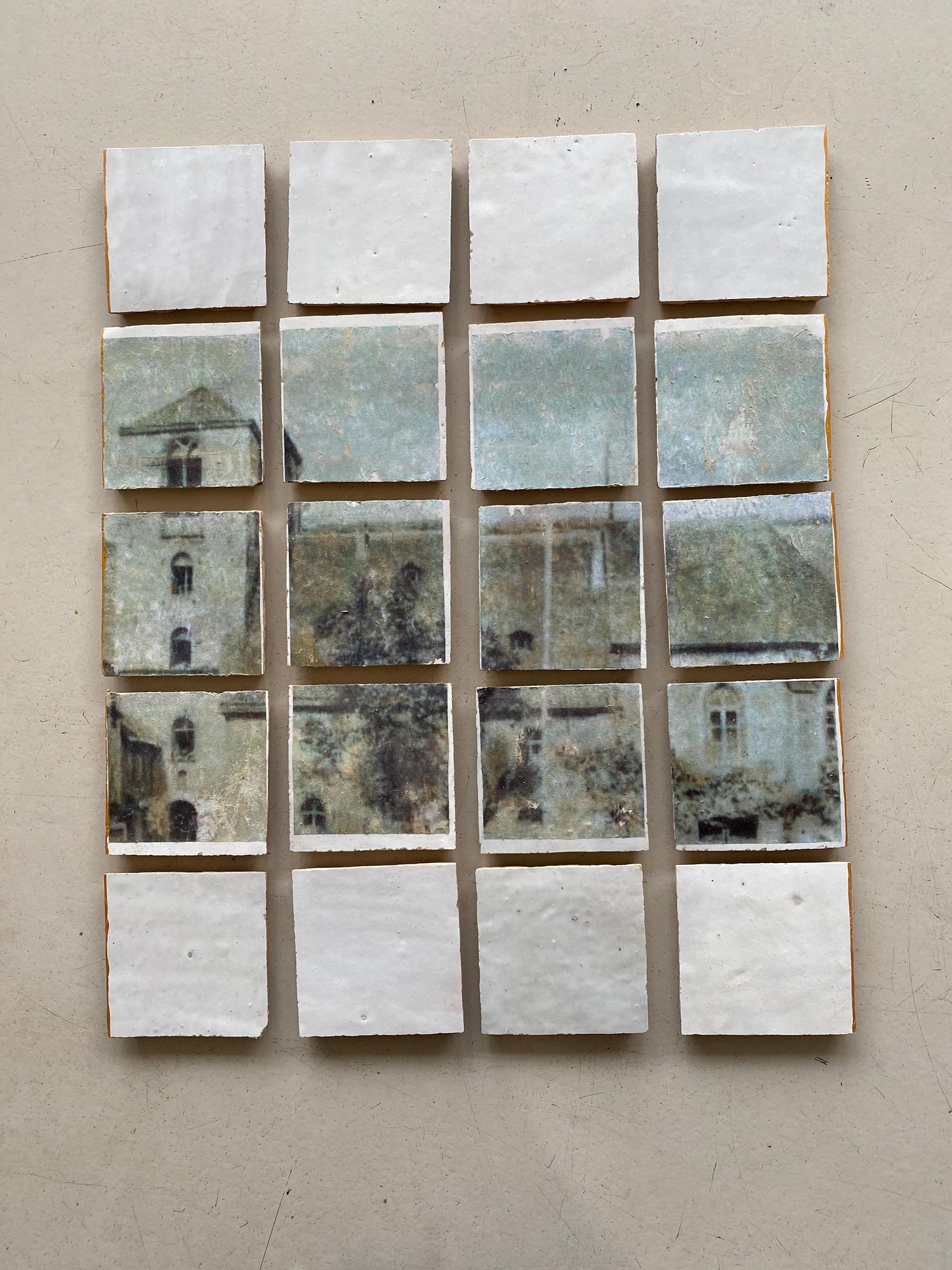 Dieses alte schwarz/weiss Foto zeigt die Kirche in Bernkastel-Wehlen. Nach aufwendigen Umbauten und liebevoller Neugestaltung erstrahlt sie heute im neuen Glanz und wird als Veranstaltungslocation und Gruppenhaus "Die Bleibe" genutzt. Als Erinnerung an vergangene Zeiten hängt dieser Fliesenbaukasten im Treppenhaus und lädt zum Puzzeln ein.